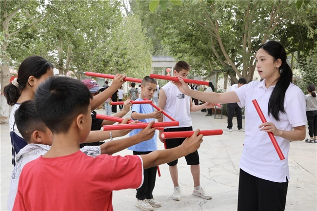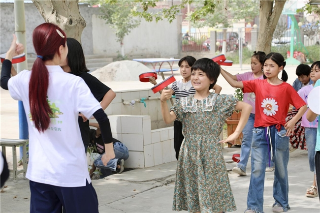 实践团立足专业优势与当地需求,构建“非遗传承展风采、科技赋能助发展、文体活动促交流、励志教育润心田、技能培训惠民生”五大实践板块,实现广泛交往、深入交流、全面交融。在非遗传承方面,开展京剧、英歌舞、钱鼓舞、书法、扎染、剪纸、咏春拳、舞狮等项目的学习体验活动,激发当地各族青少年对中华优秀传统文化的认同感;通过AI应用、编程启蒙、科普实验等科技课程,助力边疆青少年接触前沿科技;组织健美操、墙绘、朗诵等文体活动,搭建各族青少年互动的桥梁;以实践团大学生的求学成长故事开展励志教育,激励青少年树立远大理想;发挥实践团成员专业优势及实操经验,向当地村民系统传授短视频拍摄和直播技巧,为当地杏产业插上数字化的翅膀,拓展销售新渠道。