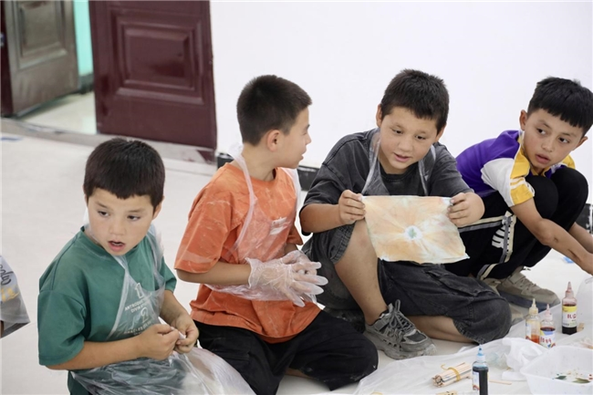 塔什米里克乡青少年展示扎染学习成果