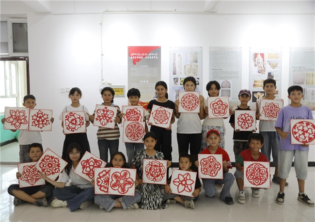 塔什米里克乡青少年展示剪纸学习成果