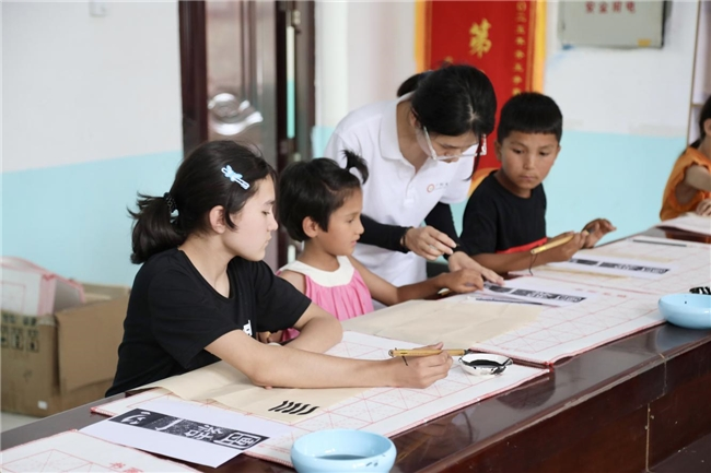 实践团在塔什米里克乡教授书法课